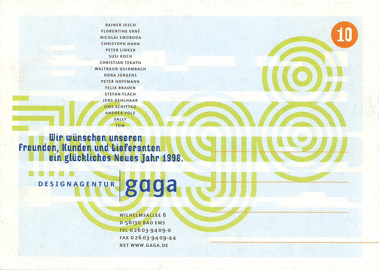 “Zehn Jahre“. New Year’s Card, offset, 148 x 105 mm (1997).